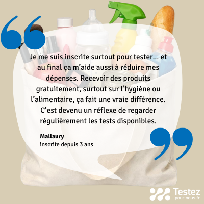 Le plus important est de remplir correctement vos habitudes de consommation. Ainsi, nous vous proposerons uniquement des produits que vous avez déclaré consommer Exemple de tests non-alimentaires : gel douche, shampoing, lessive, adoucissant, hygiène dentaire, hygiène intime, produits de rasage ou d’épilation, produits pour bébés (couches, lingettes…), produits capillaires hommes et femmes… Exemple de tests cosmétiques : maquillages, soin cheveux, soin barbe, soin corps…